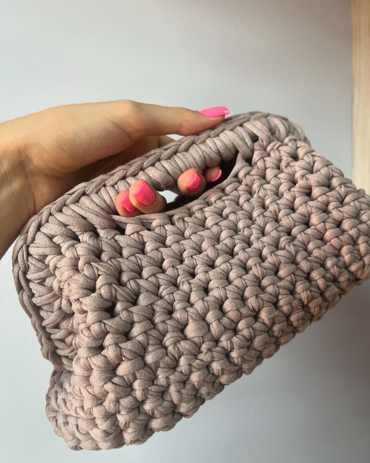 🧶 Comoda, capiente e lavorata all’uncinetto con un filato grosso dal carattere deciso.