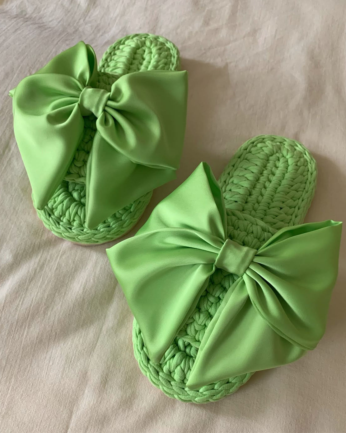Elegante ciabattina verde smeraldo impreziosita da un delicato fiocco di raso tono su tono, perfetta per un tocco di classe anche nei momenti di relax.”