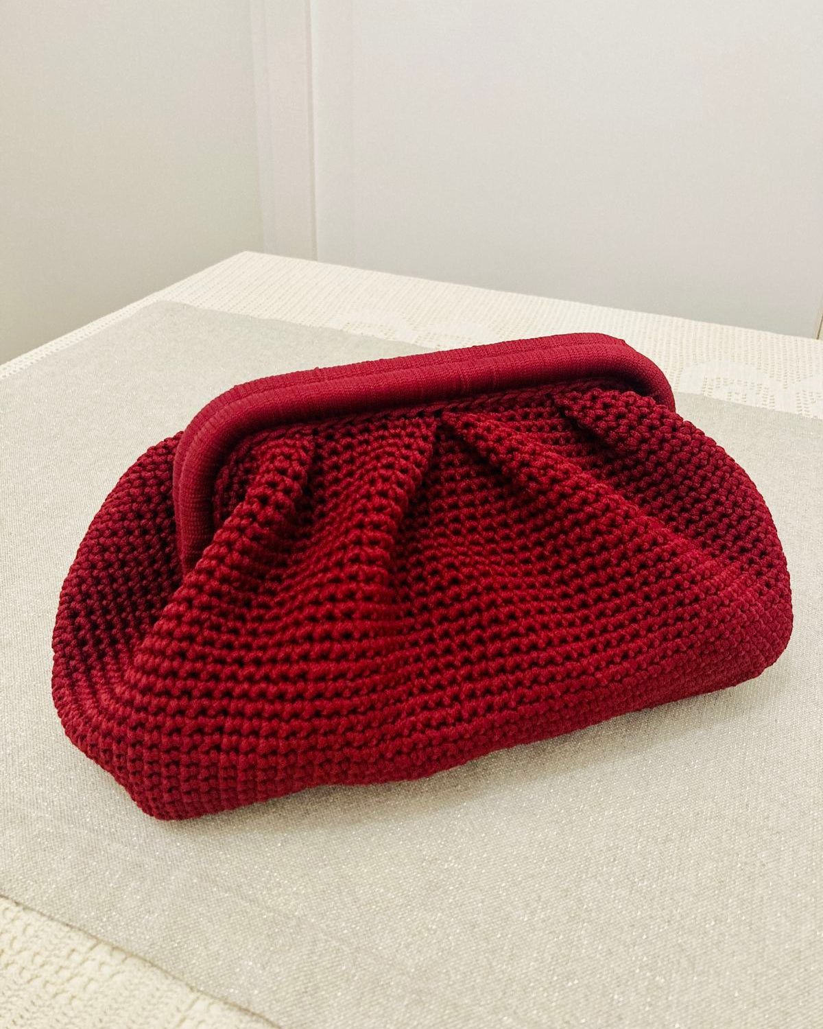 Tra i riflessi dorati della sera, spiccava la sua pochette rosso Valentino: piccola, perfetta, come un segreto sussurrato alla notte.”