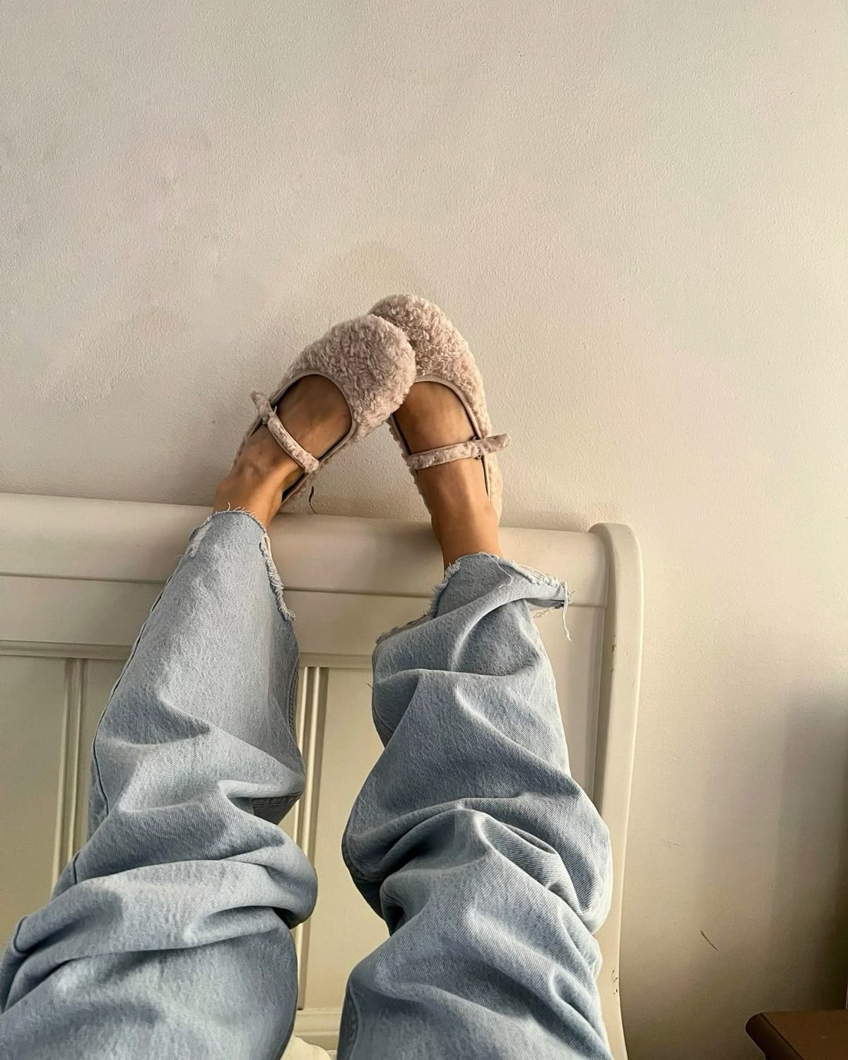 Avvolgono i tuoi passi con la dolcezza di un sogno: le nuove ballerine in peluche sono un invito alla tenerezza.”🩰